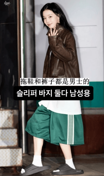 没错,金冬天和田柾国穿出来的效果,裤腿口都是在小腿位置,要知道身高相差近20公分的人,穿同一条裤子,确实不该是这样的效果,而且金冬天的私服一贯偏好oversize风格,也就是说她经常这样穿,至于拖鞋的情况,粉丝给出的解释是签售主办方提供的均码拖鞋,对此,粉丝晒出金冬天到场时穿的是运动鞋的证据,这一点非常的关键。