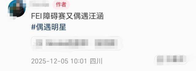 今天(12月5日),该网友分享了在FEI障碍赛偶遇汪涵的动态。值得注意的是,网友用到“又”字,这说明汪涵不是第一次带小沐沐来参加马术比赛了。