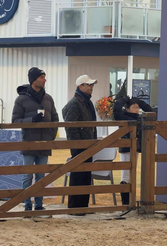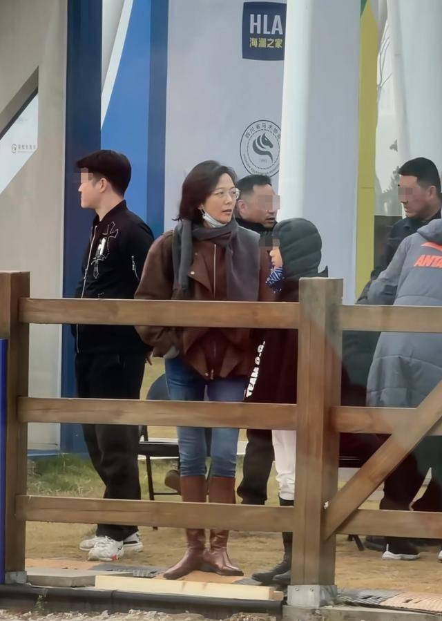 小沐沐穿了两件厚外套,还把羽绒服帽子戴在了头上,身穿白色马术裤和黑色马术鞋,乖巧地站在妈妈旁边。仔细看发现,小沐沐长得像妈妈多一点。