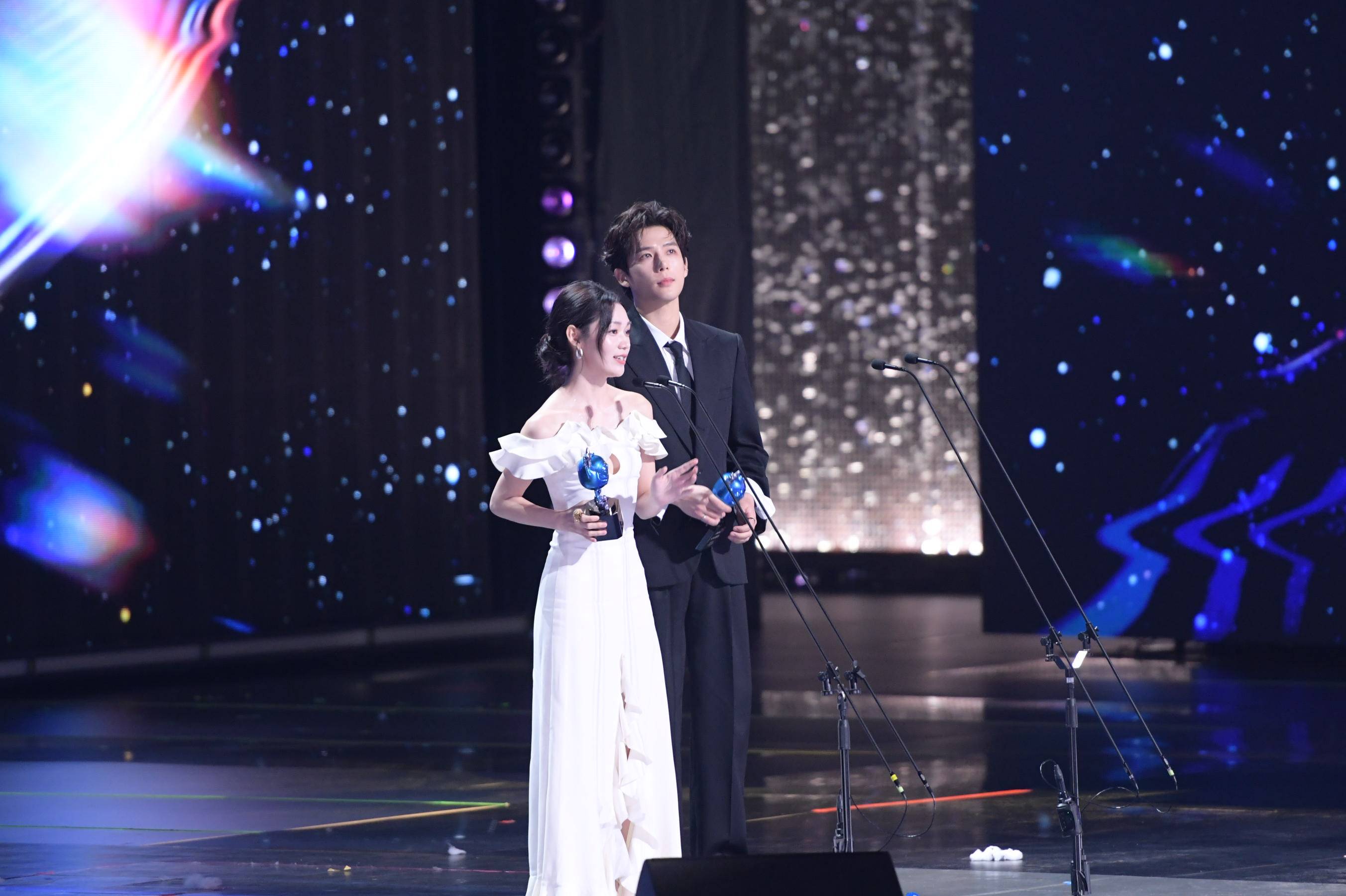 白鹿、曾舜晞、敖瑞鹏、李兰迪、侯明昊、登陆少年团、十个勤天等台上献唱;张晚意、邓为还特意将椅子转向舞台观看表演;《无忧渡》剧组的任嘉伦、宋祖儿、台下热聊;邻座的王安宇、章若楠畅聊互动。