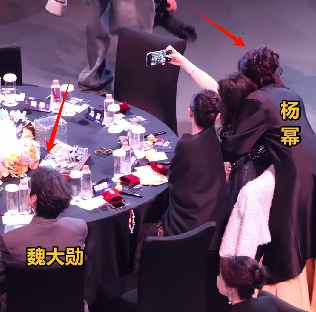 也可以理解,毕竟现场就这么几桌,杨幂和小酒窝合个影,就碰上了魏大勋,秦岚去哪桌打招呼,被人拍到都有些尴尬。