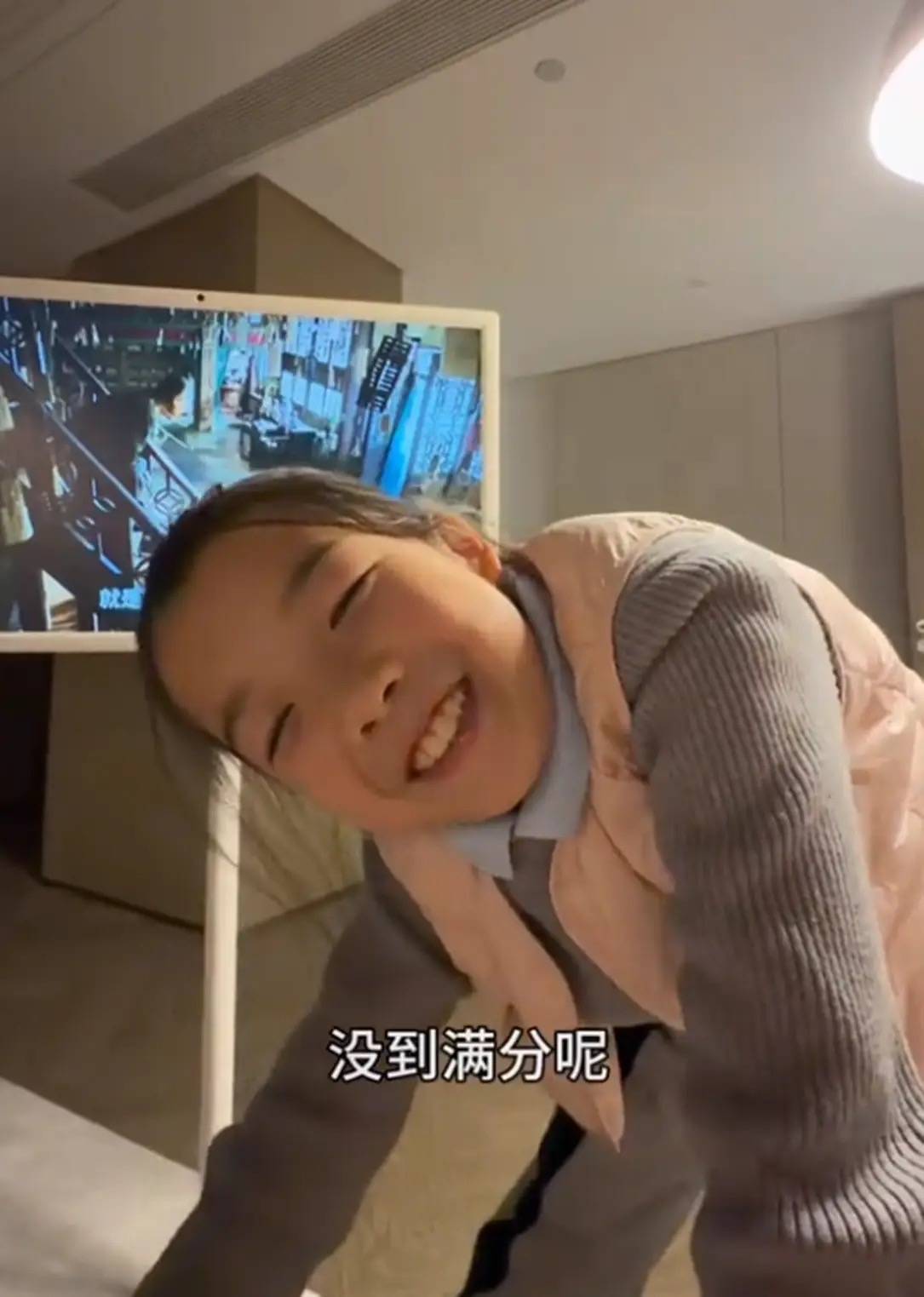 王唯伊告诉妈妈吴雅婷,还没有满分呢、不要奖励。小姑娘对自己的要求太严格了,考了第一名还不够,目标是要考100分!