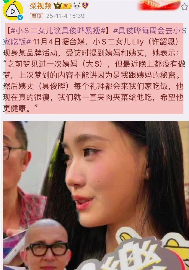 相反,她对姐夫具俊晔却格外上心。小S的二女儿曾在采访中透露,全家常邀请具俊晔到家中吃饭,担心他因大S去世郁郁寡欢,不停为他夹菜。