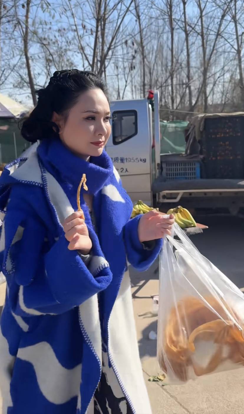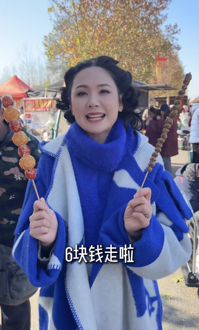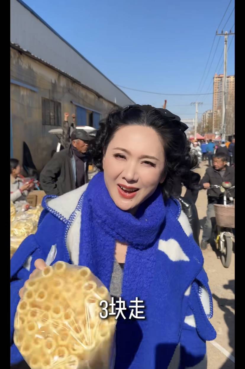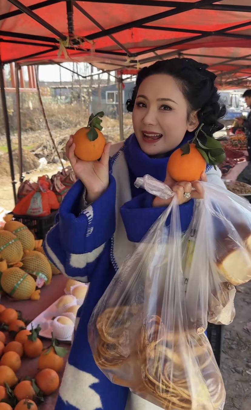 农村大集,真的非常有烟火气。程莉莎走在卖干果的摊贩前,随手拿起地瓜干就尝了一口。她说山东的地瓜干老好吃了,不愧是山东媳妇、对山东的一切都是那么热爱。