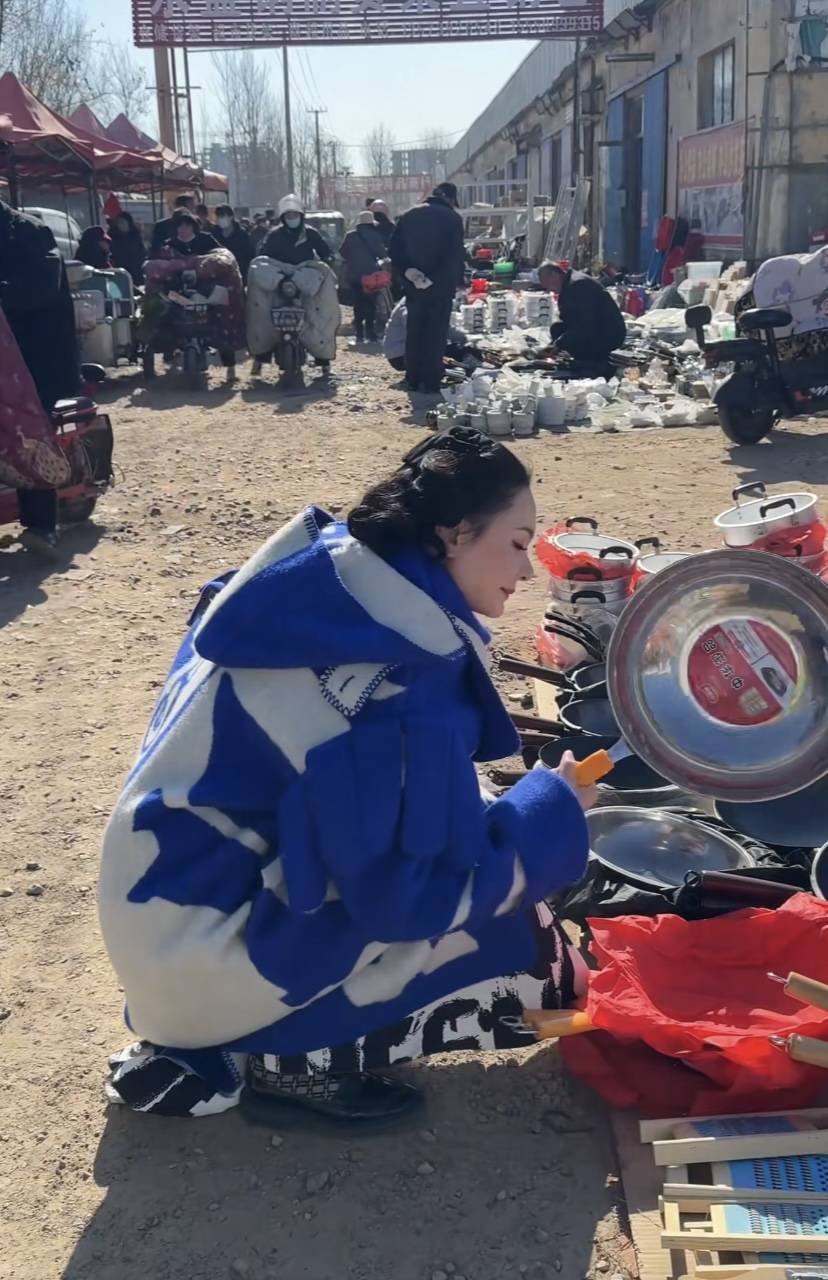 程莉莎敢山东大集,真的是看到什么都新鲜。像个没见过世面的“城巴佬”,她蹲在卖厨具的摊贩前,手里拿着一口平底锅掂量,不知道程莉莎会不会做饭,她拿锅的样子还挺专业的。