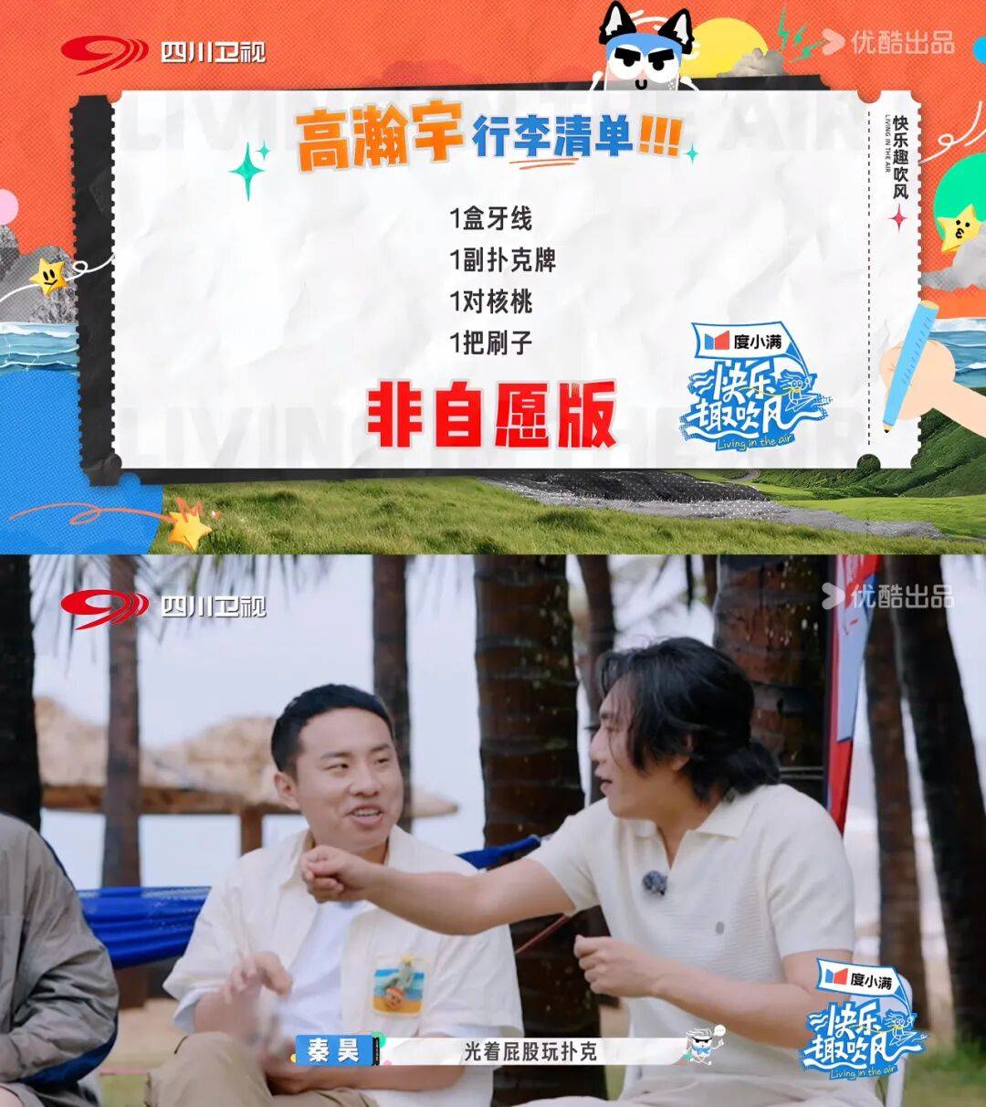 徐志胜试图用脱口秀话术谈判,颜人中直接破防放话“大不了不穿了”。轮到高瀚宇额度只剩4件,这位实在人放弃内裤,带了扑克、核桃、牙线,被秦昊调侃“想象他光屁股叼牙线打扑克”。田嘉瑞则把内裤挂身上当装饰,大张伟佛系躺平。