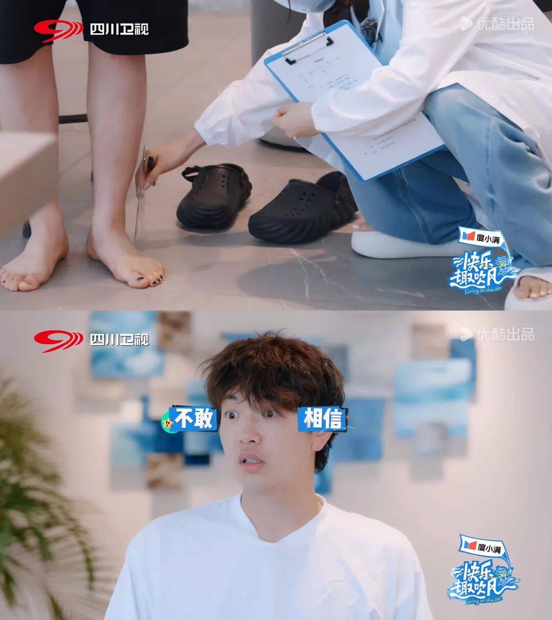 在海南,他们“随地大小睡”,戴着眼罩在机场、餐厅秒睡,高瀚宇锐评“集体吃席既视感”;中医抽象体检,蔡文静用三角尺量身高,颜人中186cm秒变165cm,李晨按脚让硬汉高瀚宇疼到五官扭曲仍嘴硬“没感觉”。