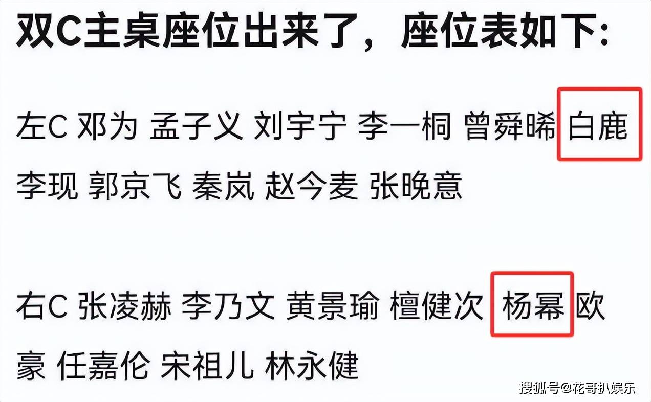 内场座次曝光后,杨幂的粉丝更是得意不已。从曝光的座次表能清晰看到,她稳稳占据右主桌C位,而白鹿则坐在左主桌C位,两大女星分占主桌核心位置,从这个座位就能看出来,这两位女星是这场活动的中心。