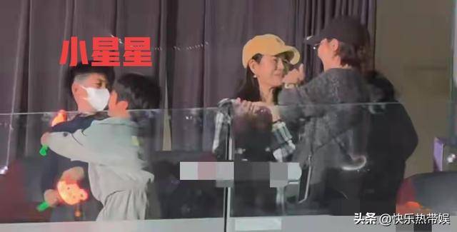 一旁的两个小朋友也热情的拥抱在一起,小星星比谢楠小儿子要高一些,手里还拿着可爱的荧光棒,对于弟弟的热情小星星似乎有点无所适从,这性格大概率是随了爸爸陈晓比较容易羞涩。