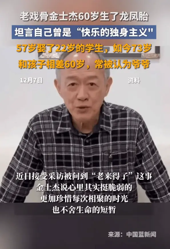 老戏骨金士杰近日在接受中国蓝新闻专访时,首度聊起自己60岁喜获龙凤胎的人生转折。他坦言曾是坚定的独身主义者,而孩子的到来让他褪去往日洒脱,多了几分悲伤、不舍与脆弱,如今
