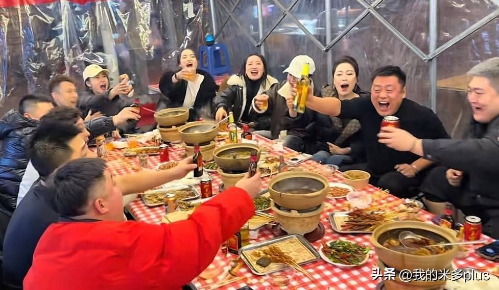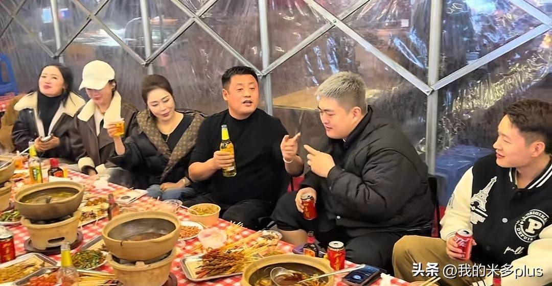 第三层是“生活上的真实细节”。这次聚餐选在路边塑料大棚里,而且还是在外地演出结束之后就地解决。大家穿得也挺随意,该穿羽绒服的穿羽绒服,耐冻的直接脱外套,桌上是砂锅、烤串、瓶装酒和饮料。没有人特地摆拍,也看不出什么“为镜头准备”的痕迹。
