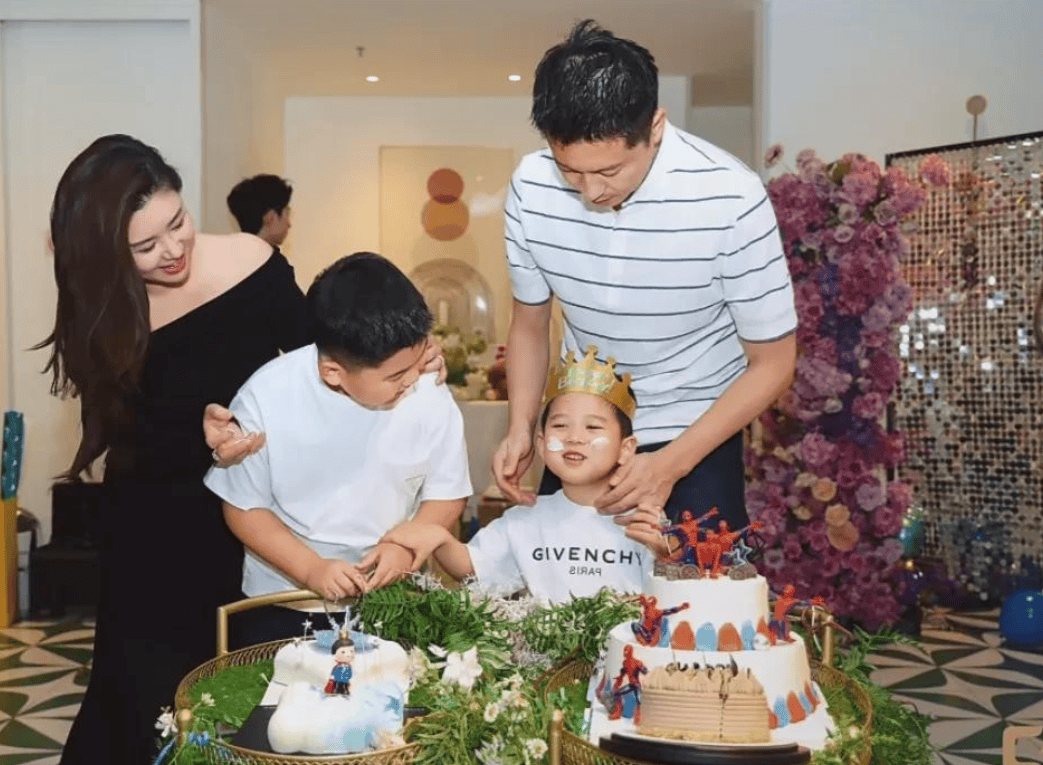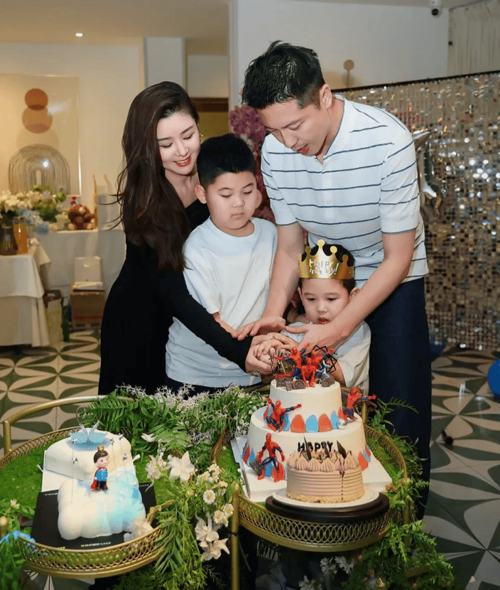 在12月7日,两夫妇为小儿子木木举办4岁的生日宴,这仪式感真是太足了,还有四宫格晒照,奶萌奶萌的都让人忍不住要亲一口了,4岁木木看起来很乖巧,和40岁的妈妈站在一起合影,真是好像,大儿子随爸,小儿子随妈妈,李小萌穿着一字肩的黑裙是一点没变老。