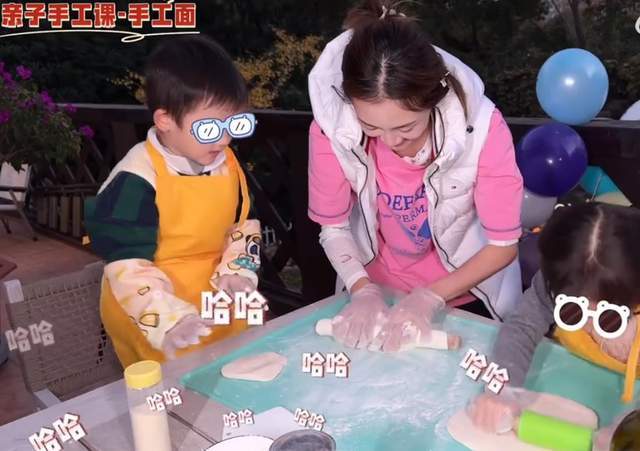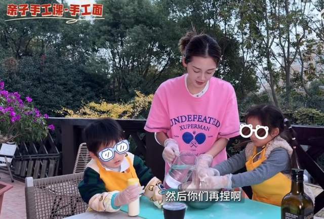 随后,苗苗带着大女儿Ana还有宣宣和面做面条,两个孩子大的5岁,小的才3岁,像他们这个年纪的孩子不捣乱就已经很不错了,但苗苗带的儿女都很乖巧,每一个步骤都认真跟妈妈一起做。