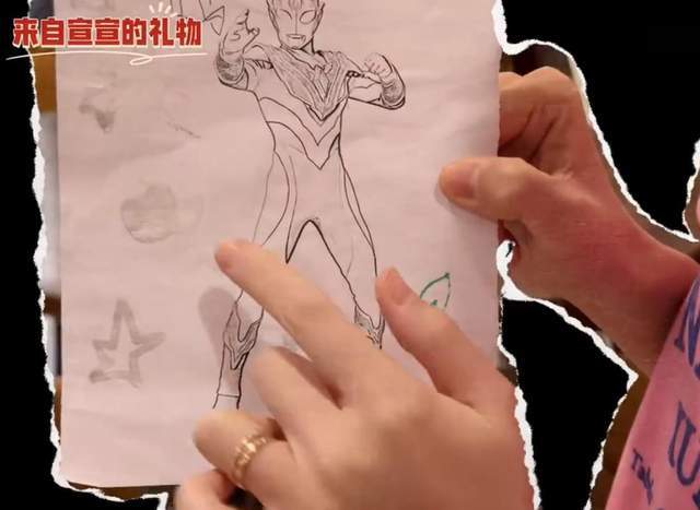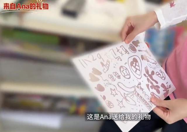 苗苗先是晒出家人为她准备的礼物,妈妈送的是鲜花,大女儿Ana还有弟弟宣宣送上的是自己亲手画的画,姐弟两个虽然还不太会写字,但他们画中的爱心和五角星同样展现出对妈妈满满的爱。