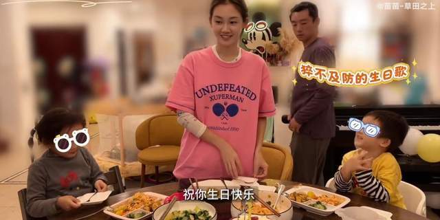 值得一提的是,迎来37岁生日的苗苗在蛋糕上面插了5根蜡烛,为此,一旁儿子认为妈妈5岁了。对于插了5根蜡烛的苗苗,想来5根蜡烛代表的是一家五口吧。