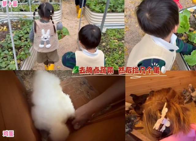 迎来37岁生日的苗苗并没有选择去外面庆祝,而是和孩子们一起将家里布置了一下,然后带着儿女去别墅院子里的菜园子摘新鲜蔬菜,苗苗还在院子里养了几只鸡,现在鸡已经开始下蛋,准备自己动手做生日面的苗苗还带着儿女捡了几个鸡蛋。
