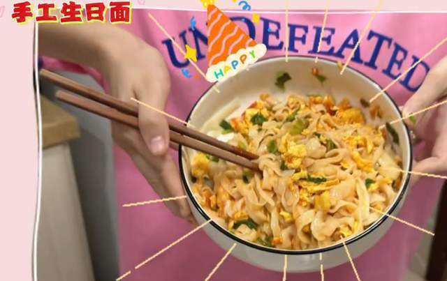苗苗还晒出了与一双儿女合作做的生日面,满满一大碗,虽然卖相不怎么好,但用苗苗的话来说自己做的就是最好吃的。