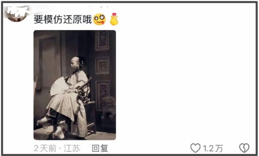 值得一提的是,关晓彤的工作室此前曾发布过关晓彤穿旗装拍摄的写真,这条动态的评论区也成为了“重灾区”,大批网友在其中“讨伐”关晓彤,有人说她的穿搭不够还原,并且附上了晚清时期古人的照片,还阴阳怪气地表示“要模仿还原哦”。