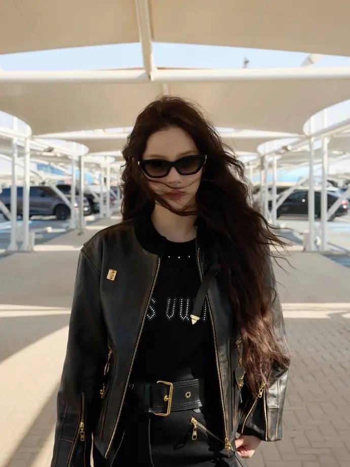 以往的欧阳娜娜,总是以甜美形象示人。这次亮相,酷飒风格拿捏的也很好。皮衣外套、高腰裤,个性的黑超墨镜,颠覆了以往对她的认知。