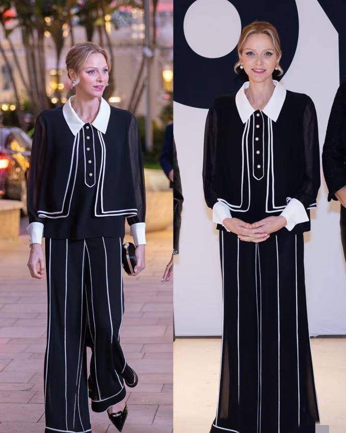 衣着方面,47岁夏琳王妃选了一件Ralph Lauren的灰色修身高领百褶连衣裙、腰配同款牌子腰带、精致雅致的妆容,显得优雅王妃范。