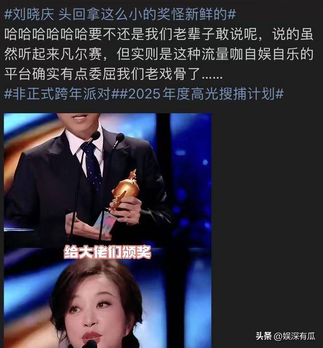 这还不是最好笑的,整个事情最好笑的是“获奖感言”,节目组专门给刘晓庆准备了一长串的发言。