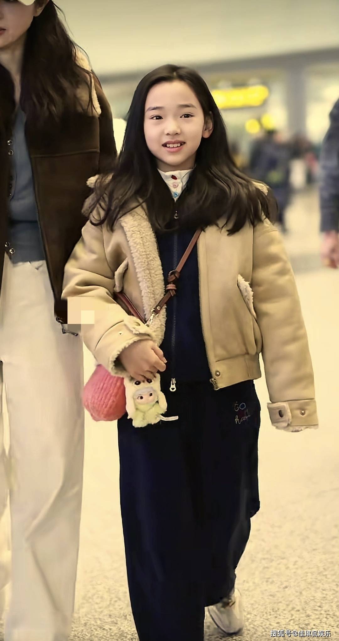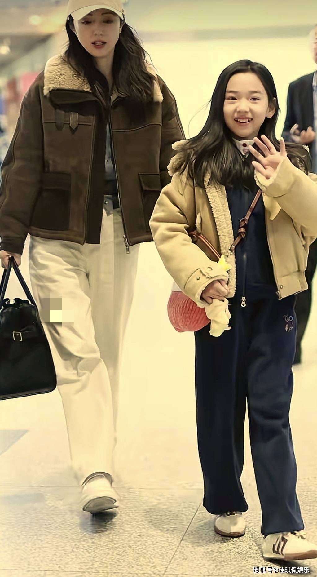 12月7日,小酒窝也与妈妈董璇踏上了返回北京的行程,母女俩在机场也被拍到了。