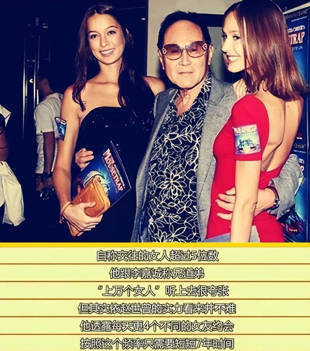 在香港豪门圈子里,赵世曾的名字从不是靠财富规模出圈,而是凭着 “超级花花公子” 的标签被人铭记。他一生未娶,却公开和上万名美女约过会,平均每年要换一百多个女友