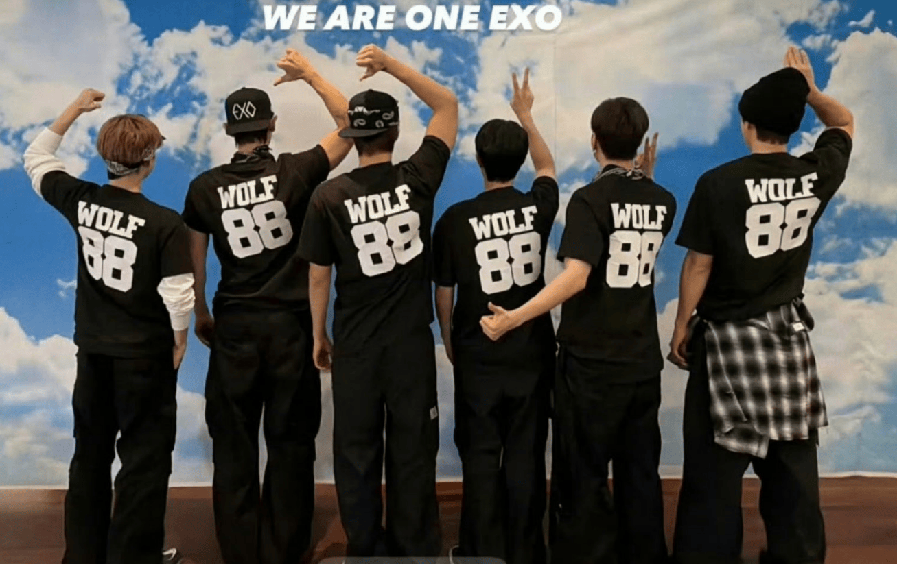 8日,EXO官方账号更新成员们的合照,大家穿着《狼与美女》的衣服,背对镜头做出手势,甚至配乐还是《咆哮》。最引人注目的则是背景为蓝天白云,瞬间把大家拉回EXO出道初期,成员们在排练室练习的画面都有了。