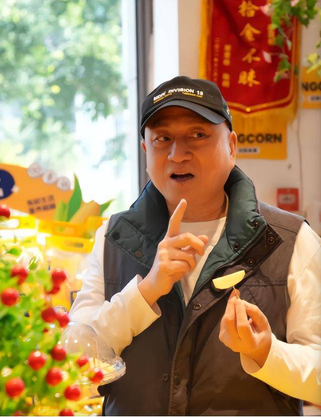 近日有网民在浙江大型超市偶遇汤镇业,从该网民分享的照片中可见,汤镇业当日头戴棒球帽、穿着马甲打扮休闲,手中正拿着一块水果与人交谈。