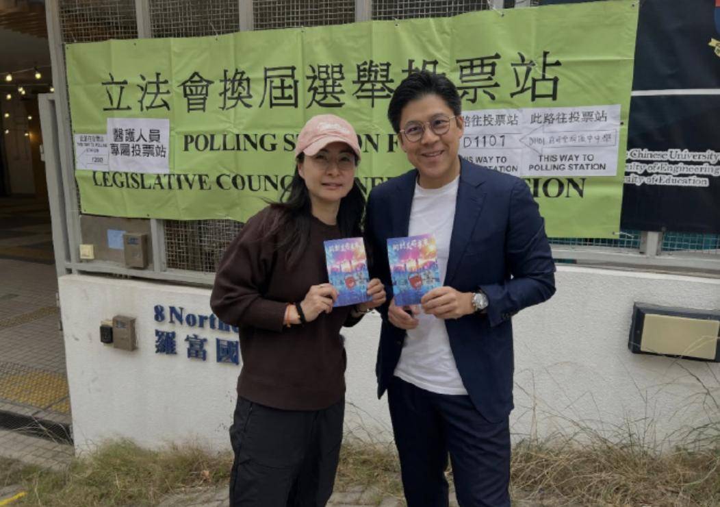 除了四大家族,其他富豪家族也在当天现身。霍英东家族就显得更有话题性,因为霍启刚是这次选举的参选人之一,他寻求连任,最近一直在跑宣传,妻子郭晶晶全力支持。投票日当天,郭晶晶刚从内地返港,就直接和丈夫一起到票站,夫妻俩并肩出现,显得很亲密。霍启刚当天还直播,号召更多人参与投票,弟弟霍启山也身体力行,用行动表态支持。