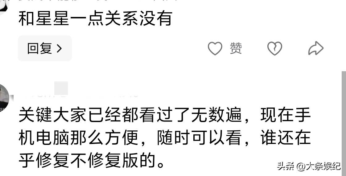 如果单看数字,会觉得情怀号召力似乎失效了,但仔细翻看评论区才发现原因。很多观众早就知道这次重映,周星驰本人并不会从票房分账中获得任何收入。因为影片版权并不在星爷手中,而归属于永盛电影公司,这家公司背后的老板正是向华强和向华胜。这次的票房收益,全部归出品方,和周星驰本人无关。