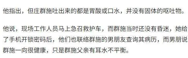 据悉,庄群施在晕倒前曾解锁手机,询问男友自己的病例,男友声称一切正常。