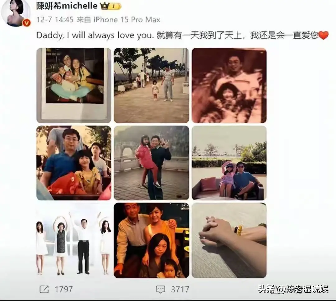 陈妍希会在微博给陈晓庆生,陈晓也会转发她的作品支持,一家三口被拍到外出的画面都格外温馨。