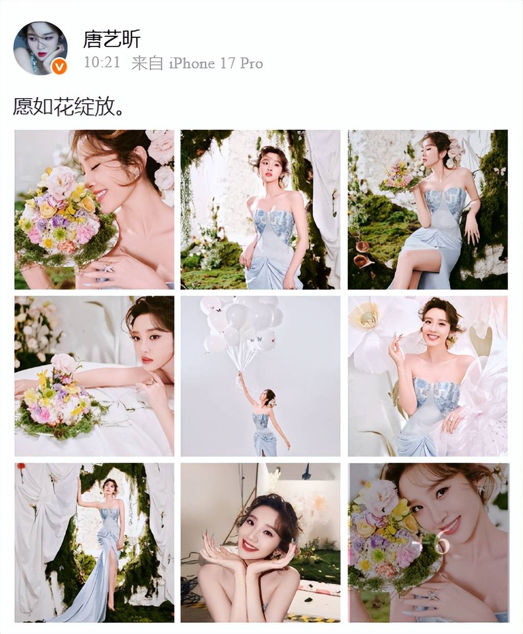 两人婚后生下一个女儿叫“小樱桃”,因为唐艺昕爱吃樱桃,所以张若昀就给她种了樱桃树,根本吃不完,这就是浪漫了,在12月9日,唐艺昕的生日,在自己的社交平台上晒出了十多张生日美照,穿着水蓝色的抹胸裙真是美得让人挪不开眼了。