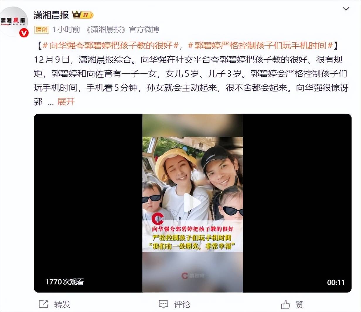 向华强一段在社交平台分享的家庭日常,意外揭开了豪门育儿中最受关注的一角。12月9日,这位影视大亨毫不吝啬地夸奖儿媳郭碧婷:“她把孩子教得很好、很有规矩。”言语