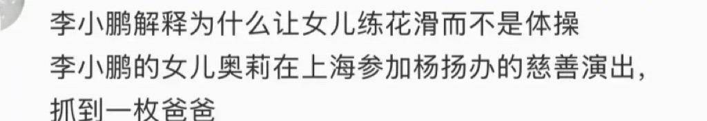 李小鹏说不让女儿练体操,理由是:练体操压力挺大的。是吧,有这样的父亲,大家就会对奥莉抱有更高的期望。