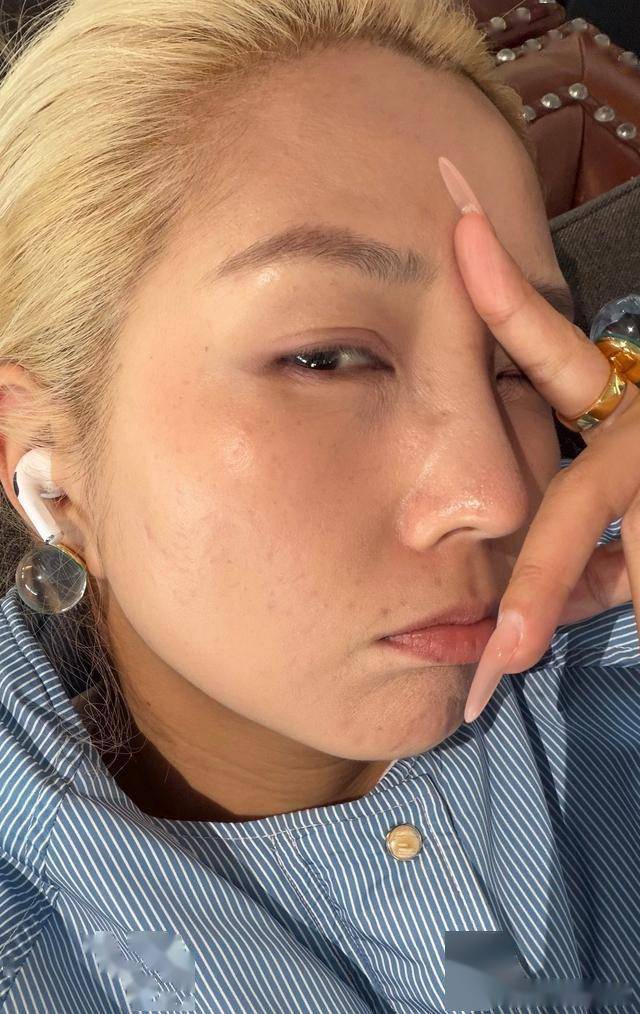 很多时尚的年轻艺人都喜欢染浅色系的头发,在舞台上唱跳的时候很容易出片,但是这个发色对于何洁来说并没有起到提升颜值的作用,反而让她看起来更黑了一些,白天户外自然光线下,头发把脸色衬托得发暗,她拿着手机和水一脸严肃,整体少了点女明星的精致感。