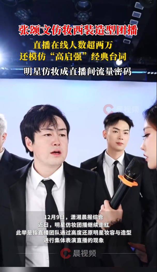 最近,直播圈被一股“明星仿妆团播”的风潮刷屏了。简单说,就是一群模仿者组团,靠高度还原明星造型进行集体表演直播。而在这股热潮里,一位名叫“小颂文”