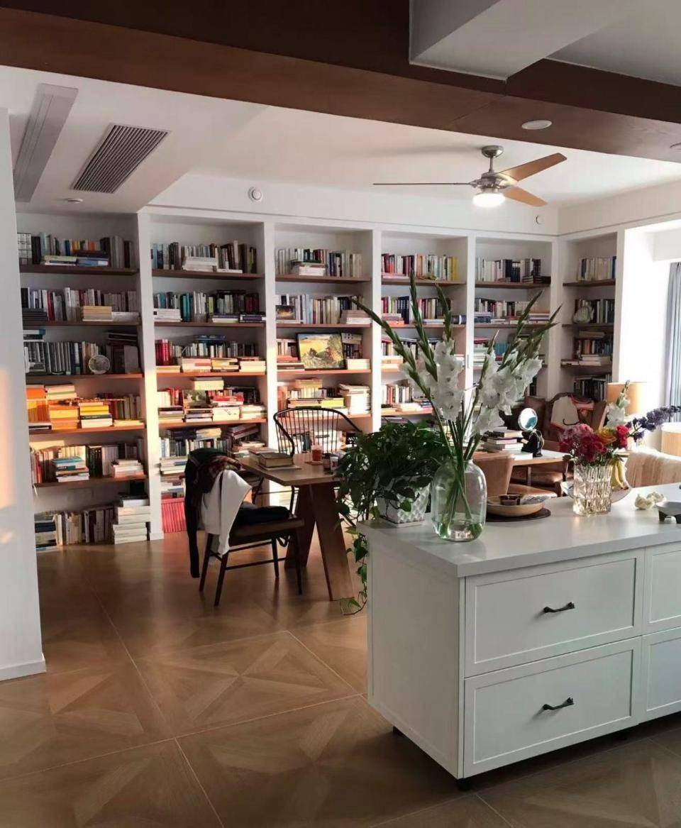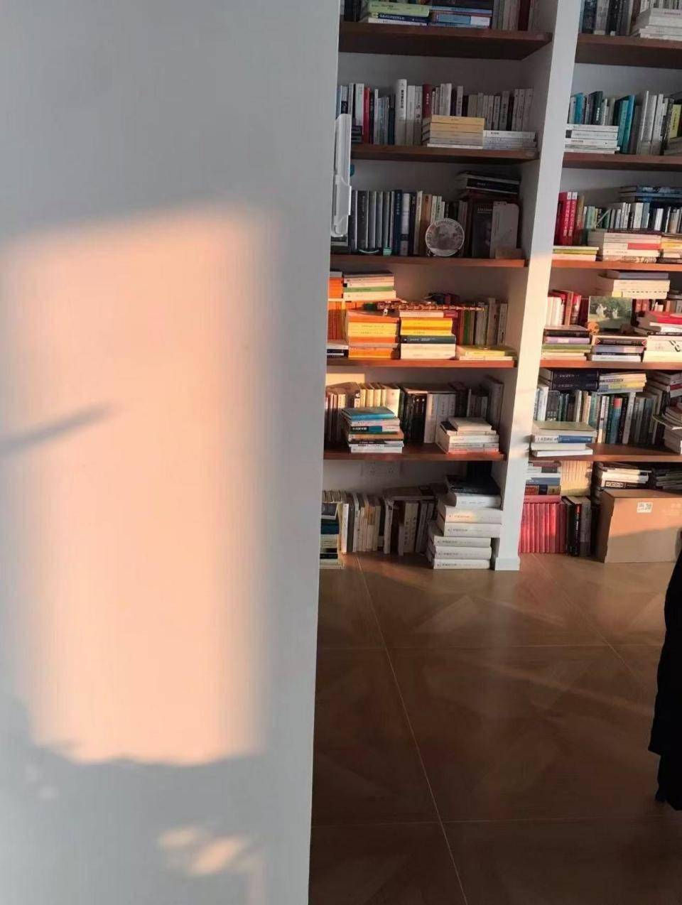 拍照的时候正好是下午太阳最足的时候,阳光斜斜地洒在墙面上,落在书脊上,就冲这环境,哪怕是随便翻本书都觉得是享受。难怪袁立淡出娱乐圈后没消息,原来人家是把时间都花在读书和公益上了,这日子过得比当明星时还充实。
