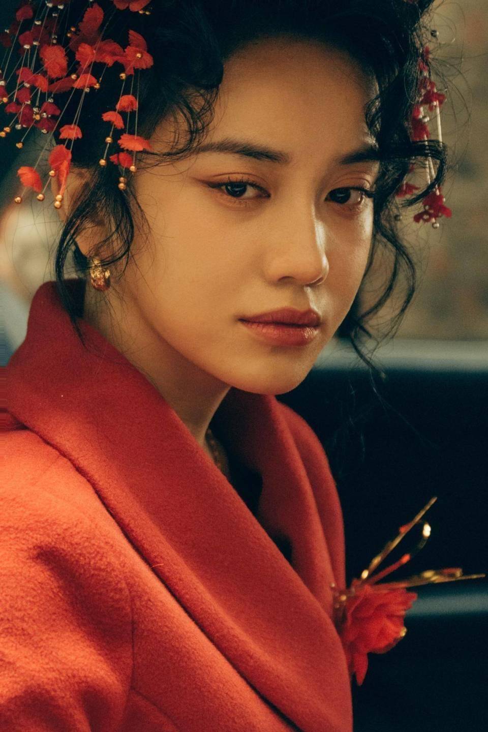 她的长相在于兼具柔美和英气,高颧骨和清晰的下颌线勾勒出锋利立体的轮廓,非常有辨识度,特别适合英姿飒爽的女性形象。