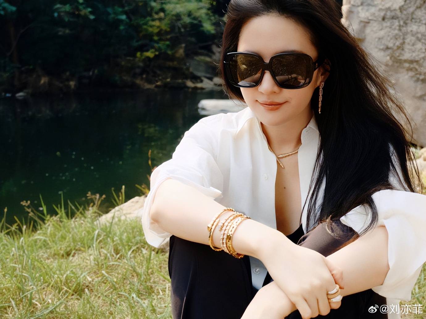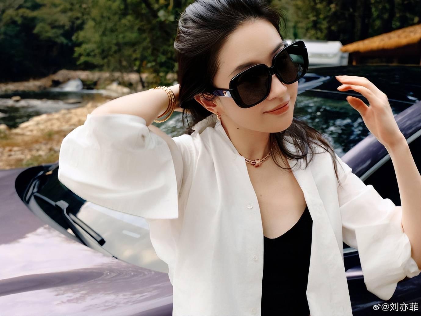 配饰和妆容一如既往地“刘亦菲式克制”。她披着自然感十足的长发,发量丰盈但不毛躁,发丝柔和地垂在脸侧和肩头,起到修饰脸型、弱化硬线条的作用;耳边只是简单的小款耳环,在发缝间若隐若现,不抢镜,但又刚好把“精致”两个字轻轻点出来。真正高级的,就是这种“配饰是存在的,但你很难第一眼注意到它”的状态,因为注意力全部被她的脸、皮肤和整体气质吸走。