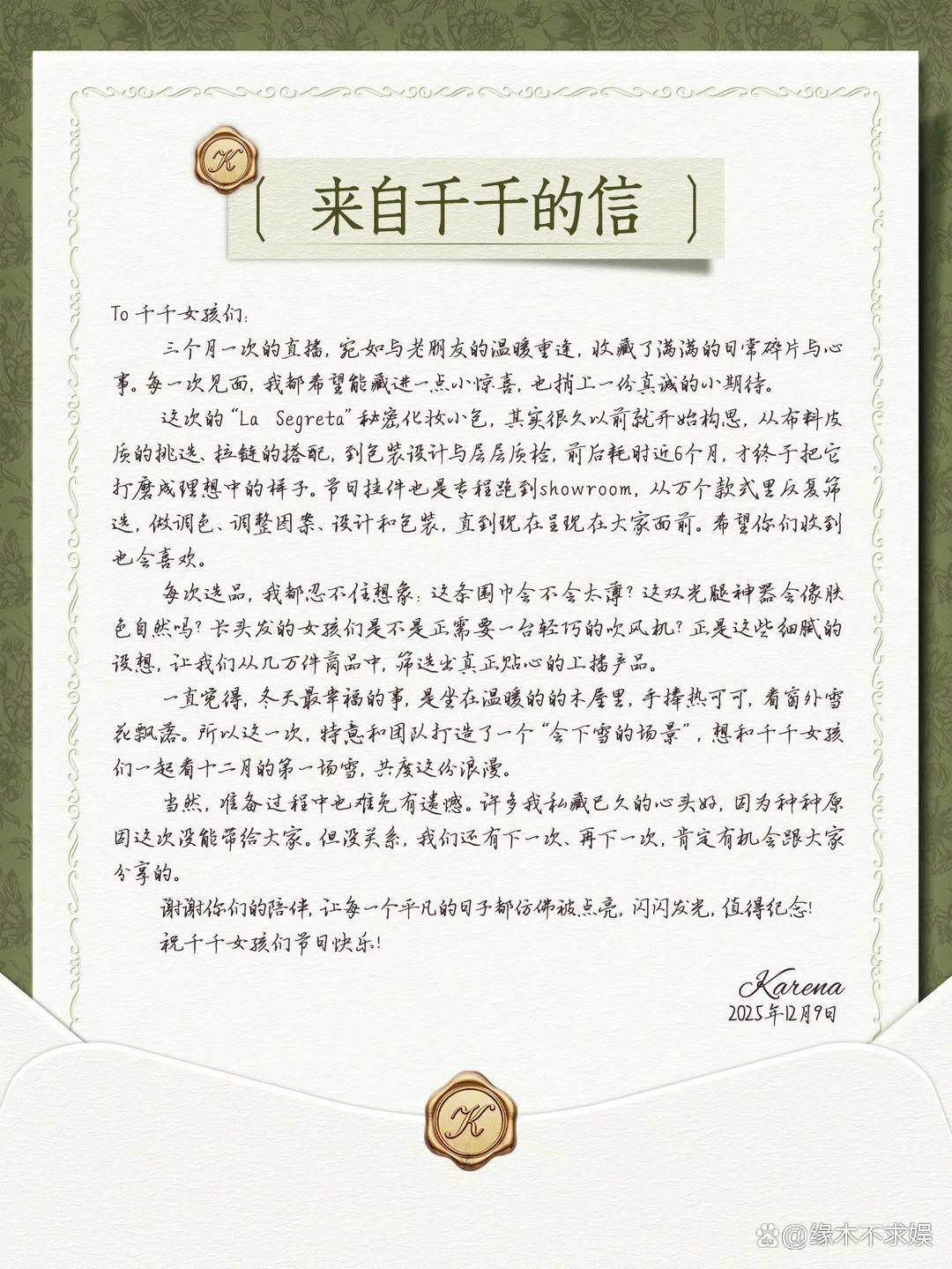 问题是,网友这边的体验,和她文案里的温情画风有点对不上。有不少人跑出来现身说法,讲自己在那晚直播里的消费经历。有观众说,明明所在城市没多冷,却在氛围带动下买了好几件羽绒服;也有人直言,金价本来就不低了,却在直播间莫名其妙下了黄金单,关播后一看账单,自己都被吓一跳,消费金额过万的并不在少数。