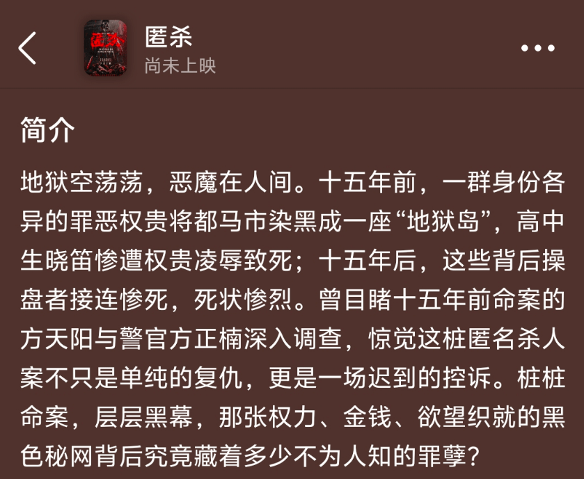 不过从剧情简介和预告看,从《默杀》到《匿杀》,柯汶利的“杀系列”已然有了独特风格,演员并非决定因素,《匿杀》就又是校园暴力配上权贵压迫,主打血腥暗黑大尺度,上映就自带受众。