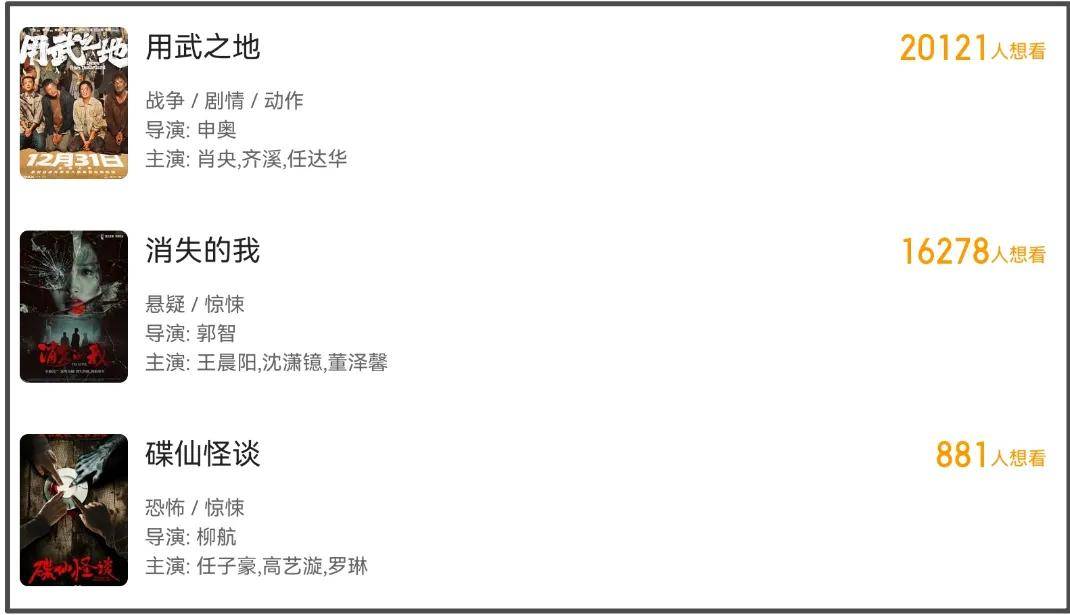 随着电影《寻秦记》官宣定档12月31日,2025年跨年档已有12部新片上映,总结一下档期关键字,主要有两个,一个是“原班人马”,一个是“情怀拉满”。十二部新片