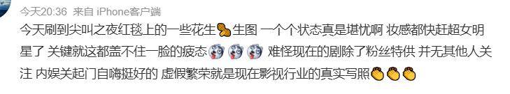 粗眼线和白色眼影一上镜就加深了疲态,显得她有气无力,被很多网友锐评和造型师有仇。