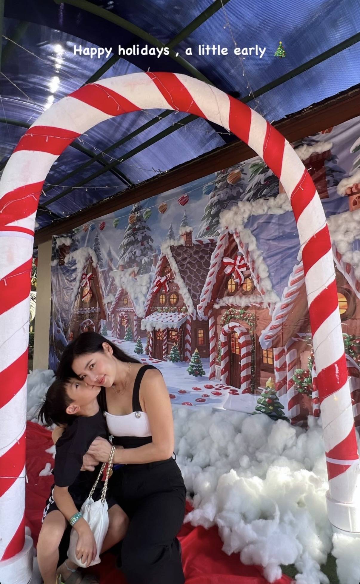 乐基儿的儿子在塞班岛生活了几年,已经适应当地的生活,还别说这里还真是应有尽有,各种西方的节庆都少不了,如今临近圣诞节,岛上也开始布置圣诞节的装饰,举办各种圣诞相关的嘉年华活动。乐基儿在周末的时候陪着儿子参加当地的嘉年华活动,并且还罕见晒出母子合照。在热带岛屿办圣诞嘉年华活动,还是很特别,现场被精心装点了一番,有红墙白屋的圣诞屋,还有用棉花堆出的积雪,涂上了白色颜料的枯枝模仿雪松,不过草地是翠绿的,大家又都穿着短袖,这种体验还是很特别的。