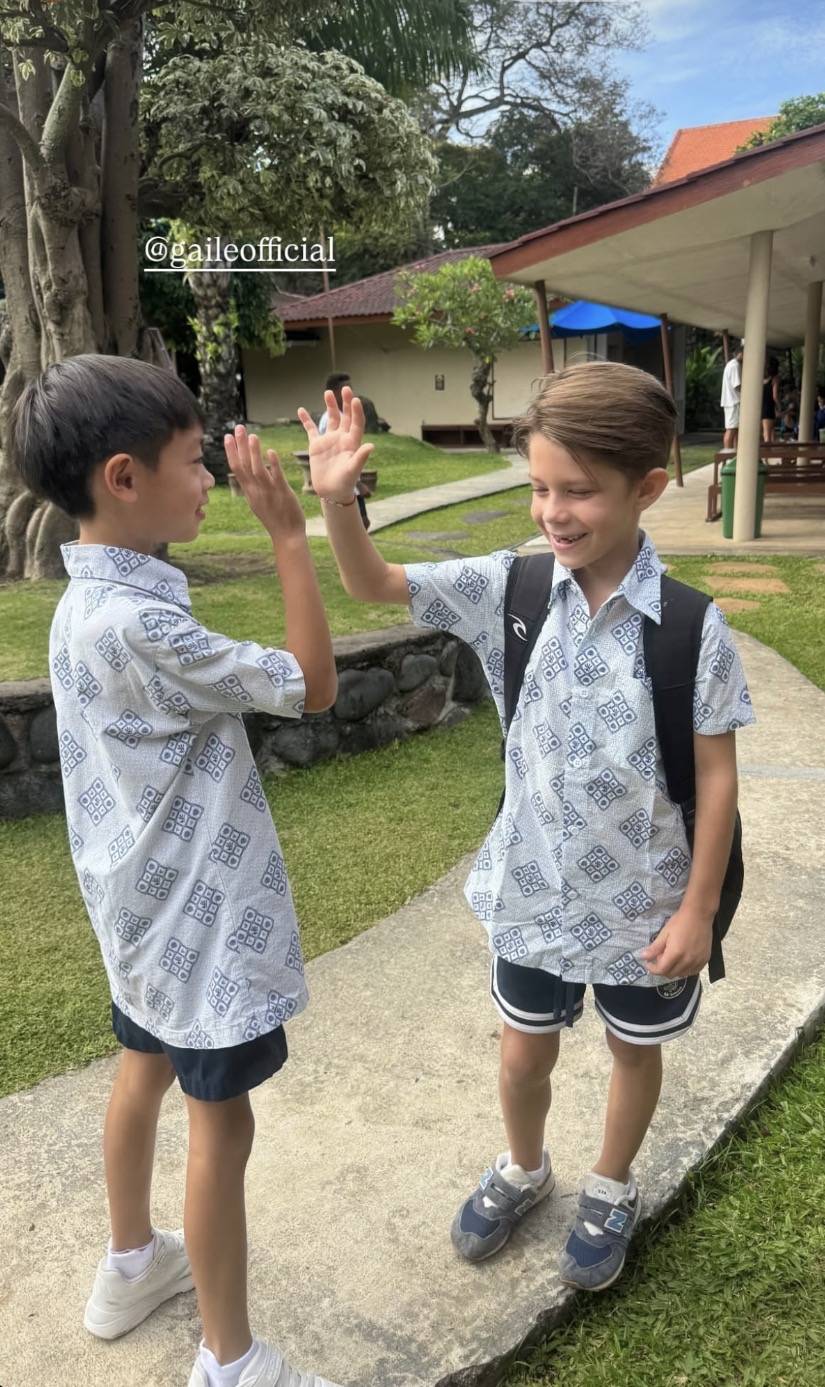 以现状来看,乐基儿的儿子在塞班岛的生活绝对是她的预期,就是自由自在,不受约束,非常开心。Hunter在岛上就读的是位于苍古中心的国际学校Canggu Commuity School,这可是国际名校,重点是一二年级的课业一点都不重,下午2点20就放学了,有的是玩乐的时间。乐基儿不在塞班岛的时候,除了有家人帮忙照顾外,她在岛上认识的朋友,包括模特虹萱也会帮忙照顾Hunter。事实上Hunter上岛几年已经结交了不少的同学、朋友,就算乐基儿外出工作,他也不会孤单、寂寞,不是去室内攀岩,就是到泳池游泳,生活丰富多彩。