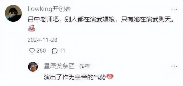 台词功底更是惊艳,每句话都掷地有声,连导演都忍不住感叹“这就是我要的武则天”。