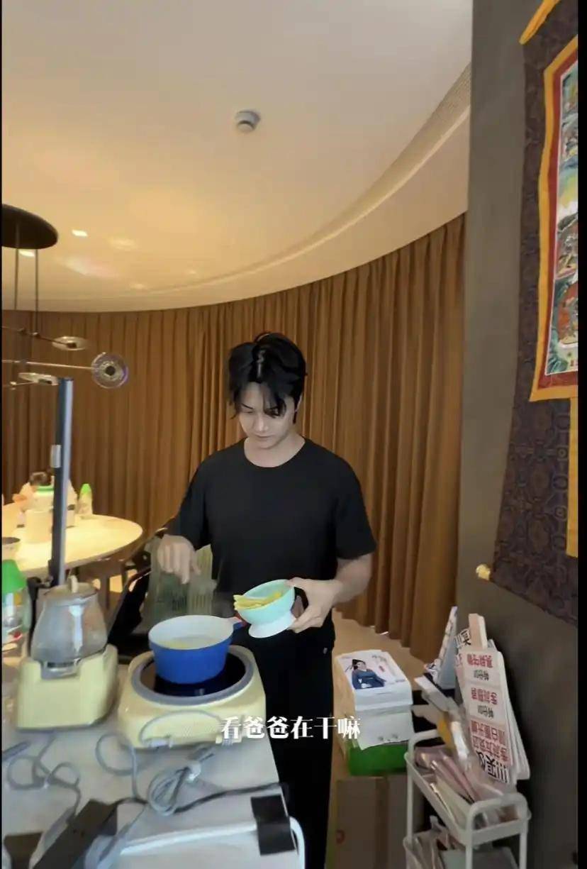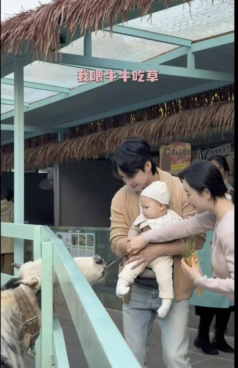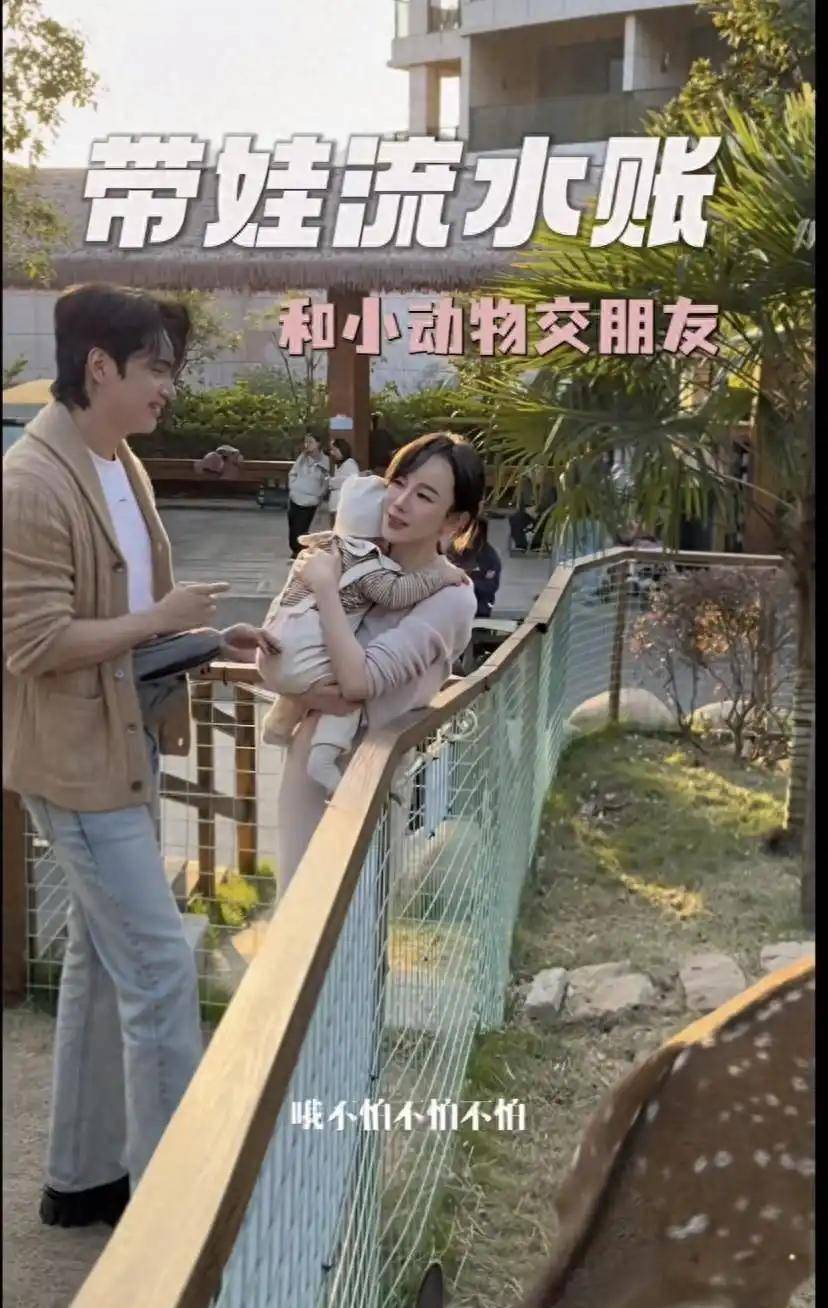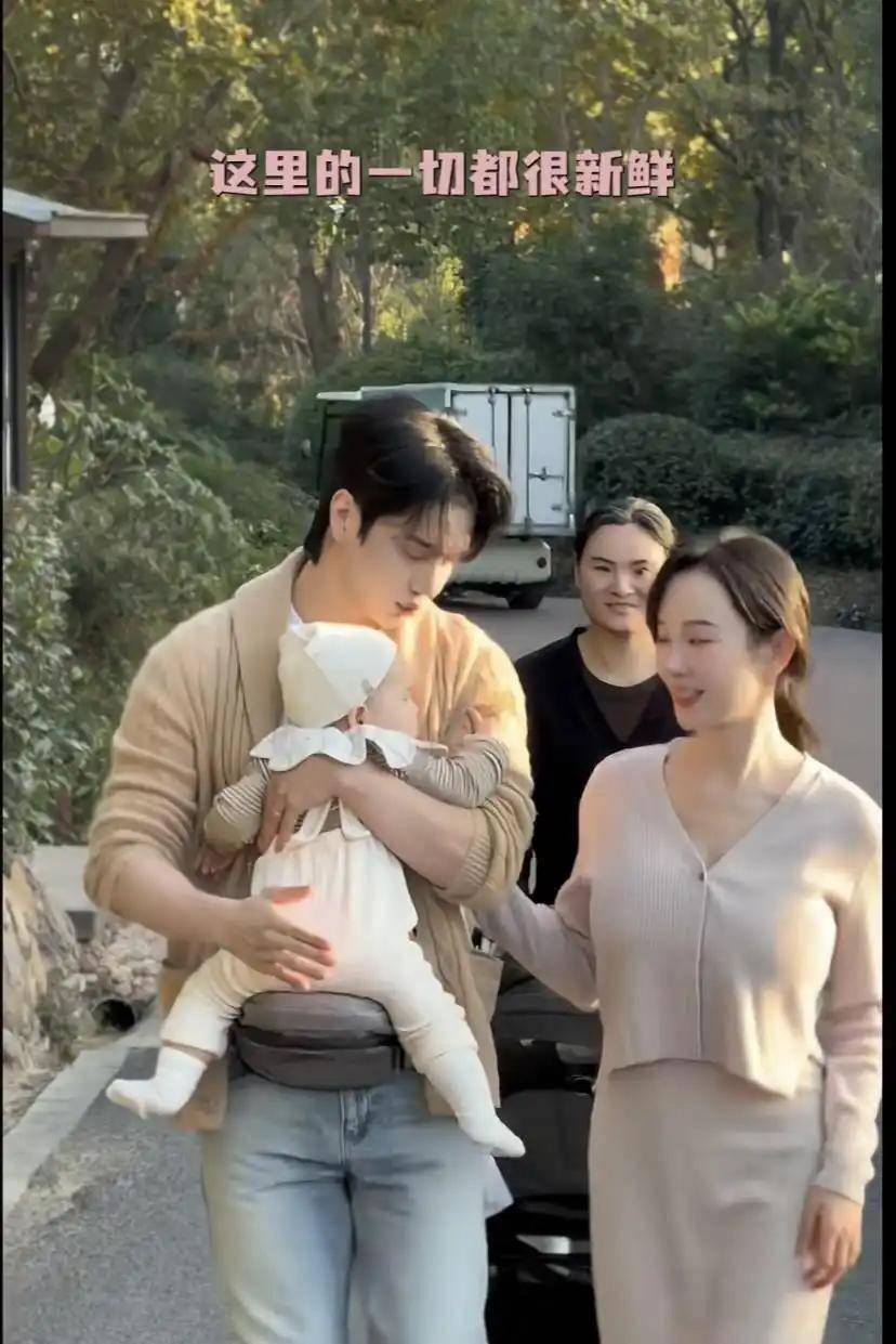 保姆推车在后,爸妈轮流抱,分工写脸上。