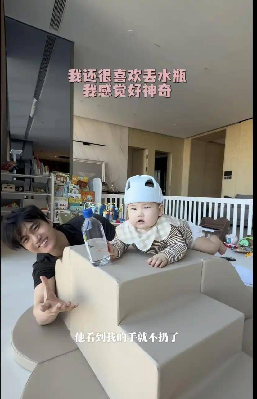 水瓶丢出去,爸爸弯腰捡,笑声撞天花板。